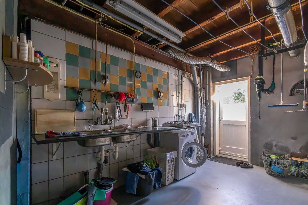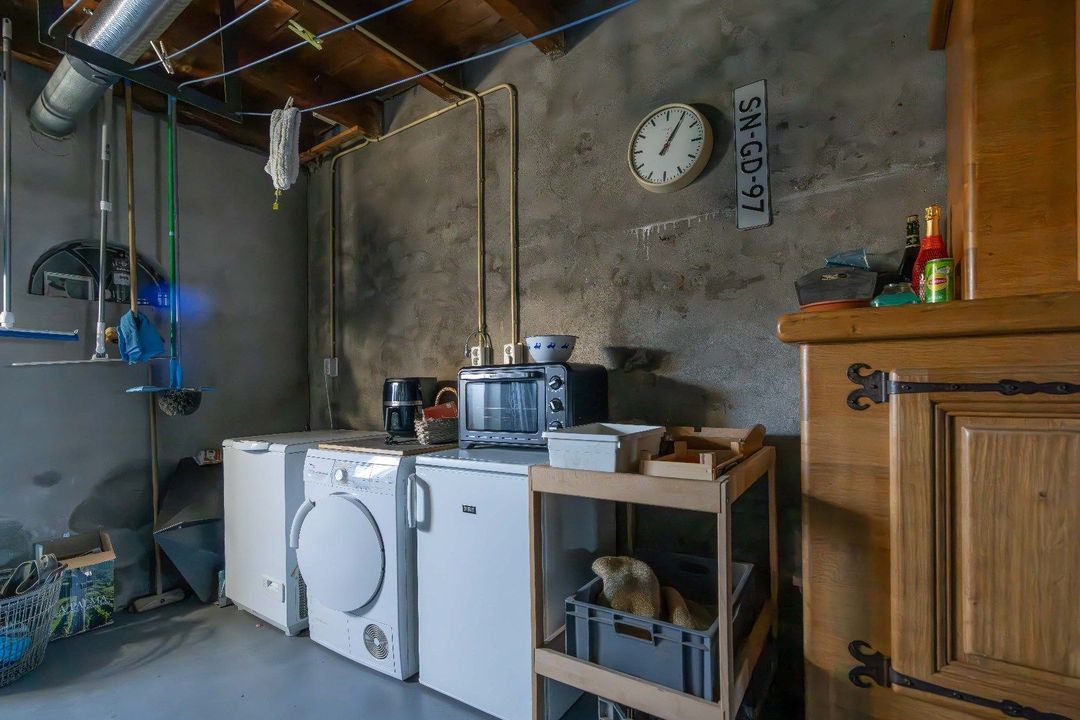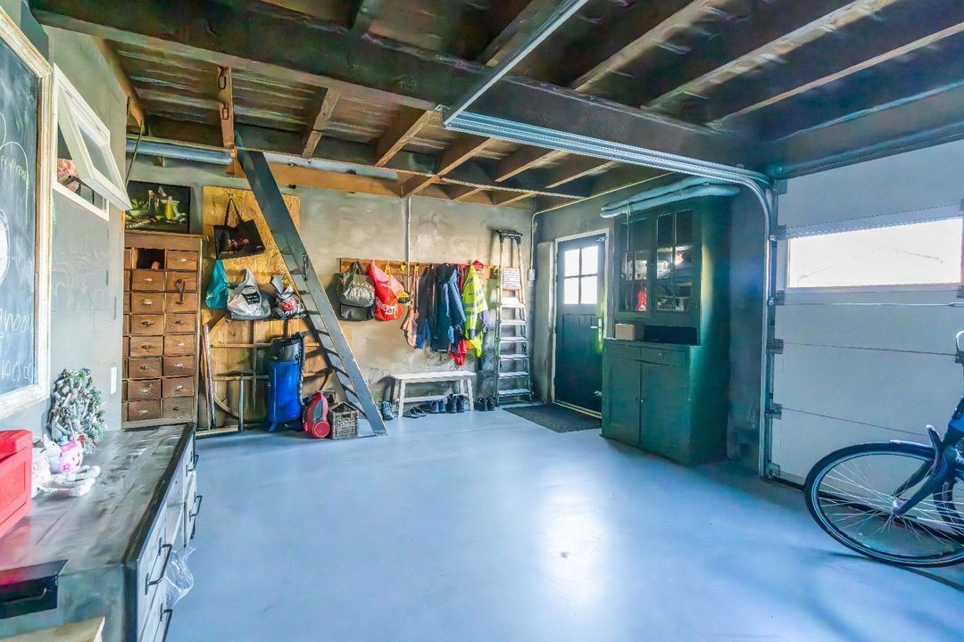 - Inpandige garage met veel opbergruimte, nieuwe badkamer, en bijkeuken. Via een overheaddeur kunt u ook de auto binnen parkeren.